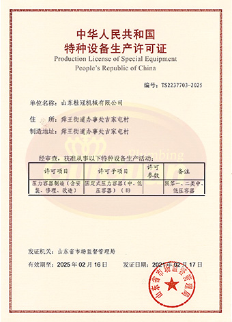 山東桂冠機(jī)械有限公司成立于2008年,注冊資金1600萬元,現(xiàn)有員工200多人,中高級技術(shù)管理人員45人,占地面積27000多平方米,生產(chǎn)車間面積12000多平方米。公司具備壓力容器產(chǎn)品的設(shè)計、制造(證書編號為:TS2237703-2025)、壓力管道安裝(證書編號為TS3837607-2025)全套壓力容器資質(zhì);通過國家ISO9001質(zhì)量管理體系認(rèn)證、美國ASME認(rèn)證、歐盟CE認(rèn)證;擁有建筑安裝機(jī)電工程專業(yè)承包叁級資質(zhì)、建筑工程施工總承包叁級資質(zhì)及對外貿(mào)易經(jīng)營出口權(quán)…